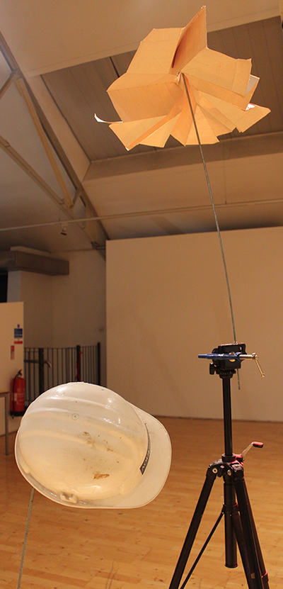 The work for this exhibition falls under the 2nd law. It consists of a sculptural installation and some new animations pieces, all of which explore in different ways how a lay-person struggles to understand scientific concepts. It has been made with the support of Armagh Observatory and Planetarium. The installation explores stellar distances by spatially imagining the constellation the Great Bear, using precariously balanced and placed found objects.