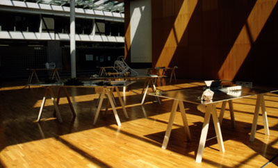 of the Plough. O'Beirn arranged her seven waist-high silver trestle tables with
