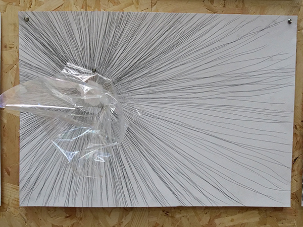 Cellophane Singularity (The other Side), Pencil and cellophane on cartridge paper A2, 2021