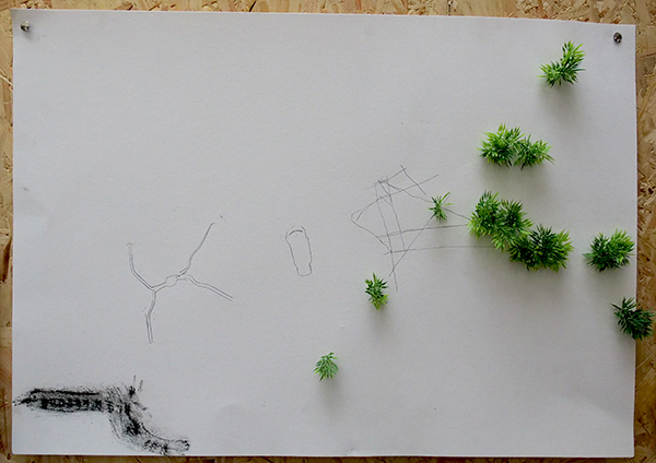 Outcropping), Pencil, charcoal and fishtank plants on cartridge paper A2, 2021
