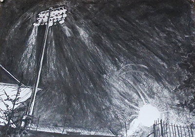 Solitude Light Pollution, charcoal on paper, A2, 2021