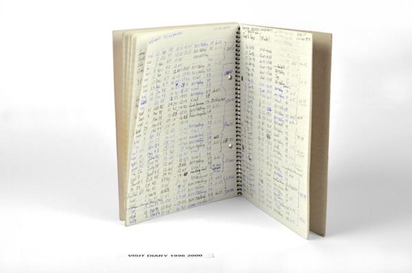 This is my personal log book, which I found useful to record each time I was in the prison; who I’d seen, what we’d done, so I could refer as a reminder for the future. I’ve got brief notes of all the visits that I’d made and then at the back of the book I’d actually put one line for each visit with the exact time, what it was for and the mileage as a basis of which I could then complete the travel claims.