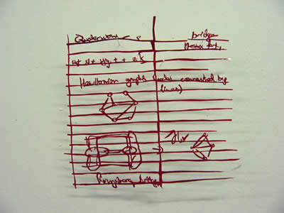 time and resolved it whilst crossing the bridge. He hurriedly inscribed it in