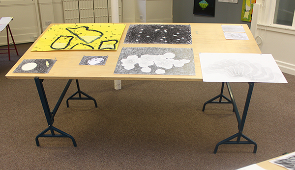Shapes Interference Pattern, charcoal and markeron paper, A3, 2020